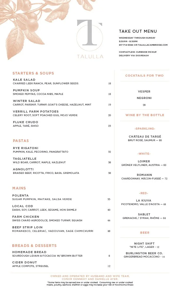 Talulla is available for take out & delivery